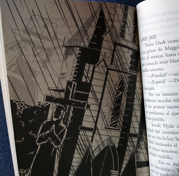 Y antes de terminar mi opinión sobre esta pequeña novela, no quiero dejar de mencionar la presentación de este aperitivo, que me gusta tanto como la historia que lleva dentro. Un bolsilibro con imágenes que acompañan a la perfección el relato, que, eso sí, advierto que es un poco gore, marca del dueño de la casa de sombras, dolor, trampas y misterios infinitos.